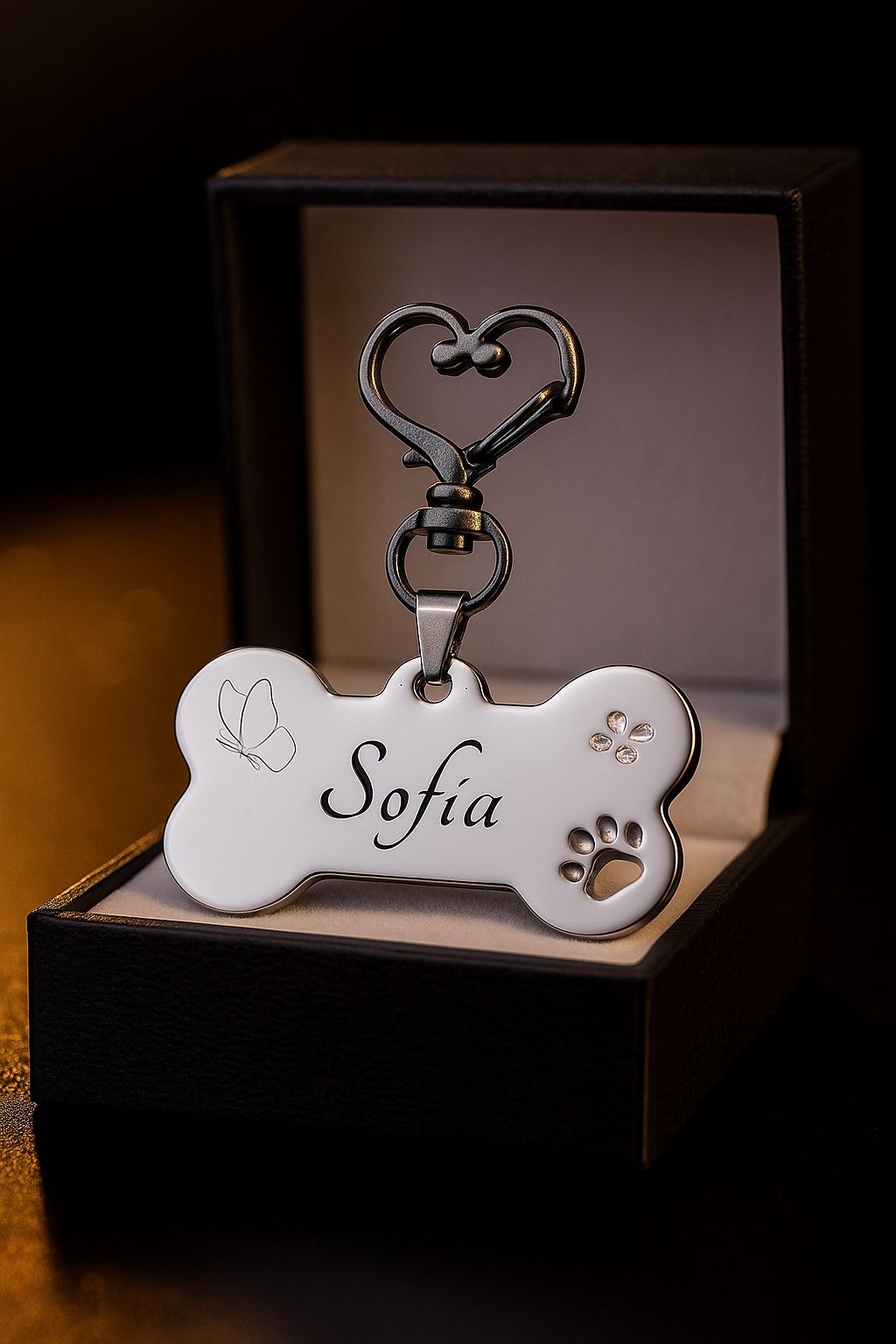 Zorg dat uw huisdier altijd direct te identificeren is met deze schitterende Romantic Butterfly Hondenpenning. Deze sierlijke hondenpenning met romantisch gegraveerde details wordt standaard geleverd met hartvormige bevestigingsring, waarmee u de penning makkelijk kunt bevestigen aan vrijwel iedere halsband. De penning is geschikt voor middelgrote- en grote honden en is 50 x 25 mm.Ā Ā