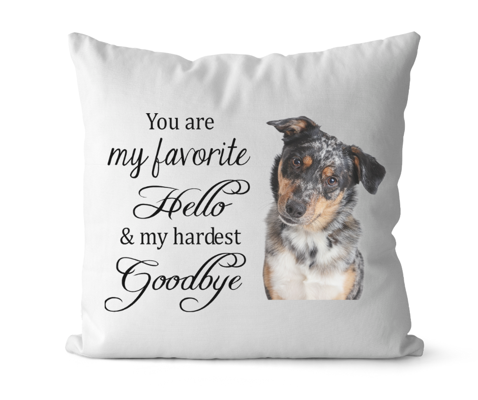 Dit hondenherdenkingskussen is een liefdevolle manier om de herinnering aan jouw trouwe viervoeter levend te houden. Het kussen is 45 x 45 cm en wordt compleet geleverd inclusief vulling. Let op: hoe beter en scherper de foto is die u upload, des te mooier het resultaat! Het mooiste is als de hond volledig en in een zittende houding op de foto is afgebeeld. Een uniek en persoonlijk aandenken, speciaal gemaakt om een vriend te eren die voor altijd een plekje in je hart heeft. Indien gewenst drukken wij de naam van uw hond onder de foto af.