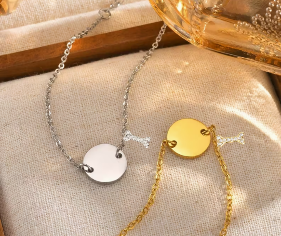 Deze schitterende stainless steel armband is het perfecte accessoire voor iedere dierenliefhebber. Op het rondje muntje graveren wij de naam van uw huisdier. De armband is voorzien van een schitterend fonkelend stras hondenbotje. Of je nu een aandenken wilt aan je hond of op zoek bent naar een origineel cadeau voor een andere hondenliefhebber, deze armband is een prachtige manier om de band tussen mens en dier te vieren.