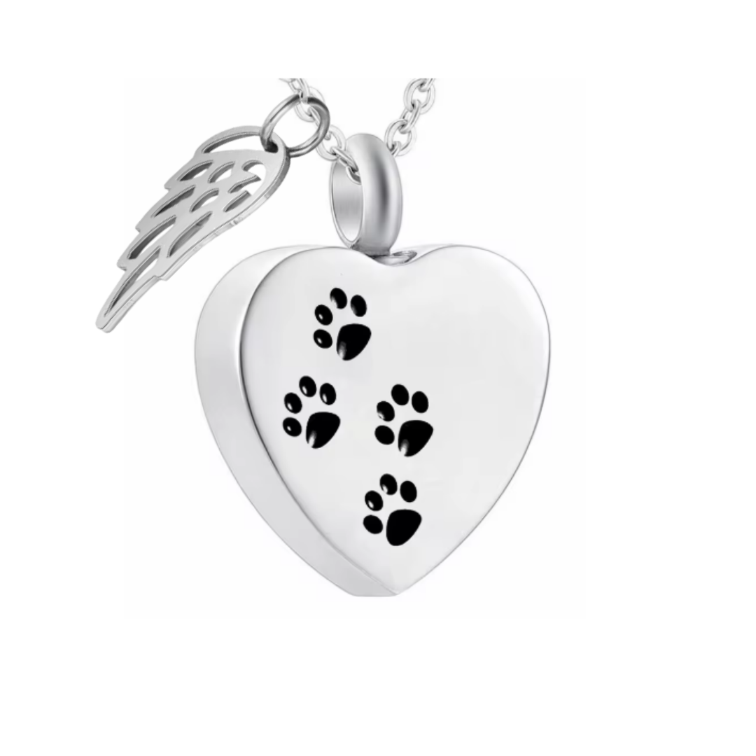 Deze ashanger in de vorm van een elegant hartje straalt liefde en verbondenheid uit. Met deze ashanger houdt u een dierbare herinnering levend. Aan de voorkant is deze ashanger voorzien van 4 lieve pootafdrukjes. U kunt kiezen of u de ketting met of zonder engelenvleugel wilt bestellen.