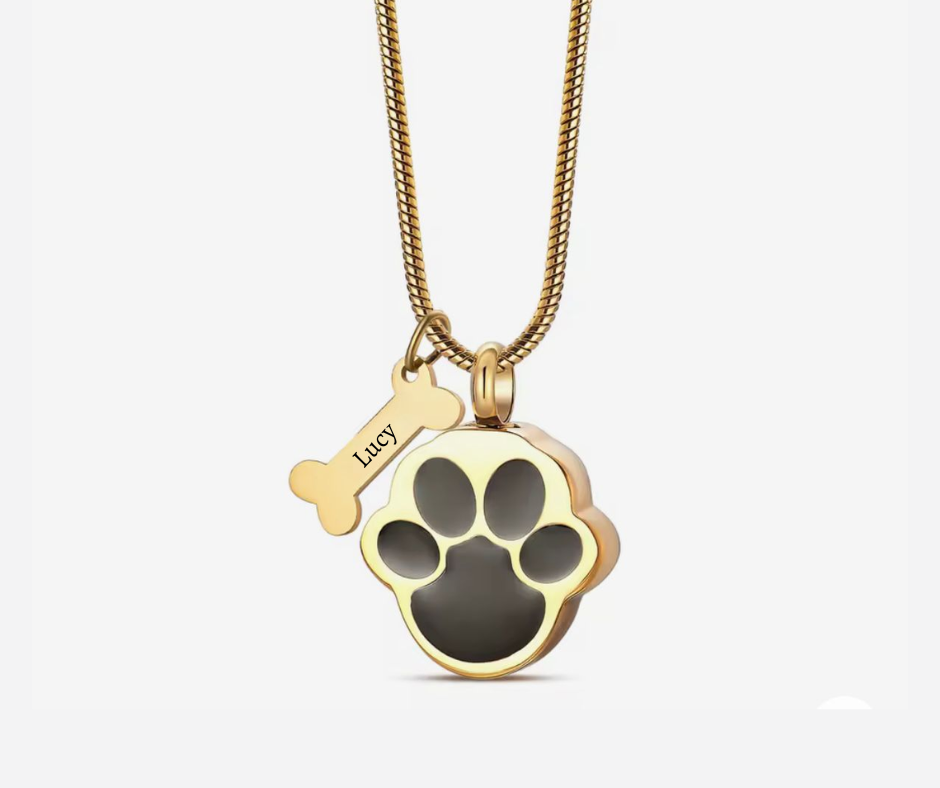 Onze unieke ashanger in de vorm van een hondenpootje is de perfecte manier om de speciale band met jouw trouwe viervoeter te eren. U kunt ervoor kiezen om een bedeltje in de vorm van een klein hondenbotje toe te voegen aan de ketting waarop wij de naam van uw viervoeter graveren.