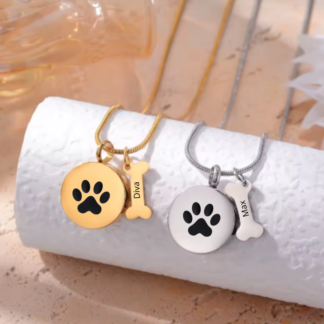 Deze prachtige ronde ashanger met pootafdruk staat symbool staat voor de onvoorwaardelijke liefde en vriendschap van je hond. De ashanger is zilverkleurig en heeft een klein hondenbotje bedeltje. Hierop graveren wij de naam van uw trouwe viervoeter.