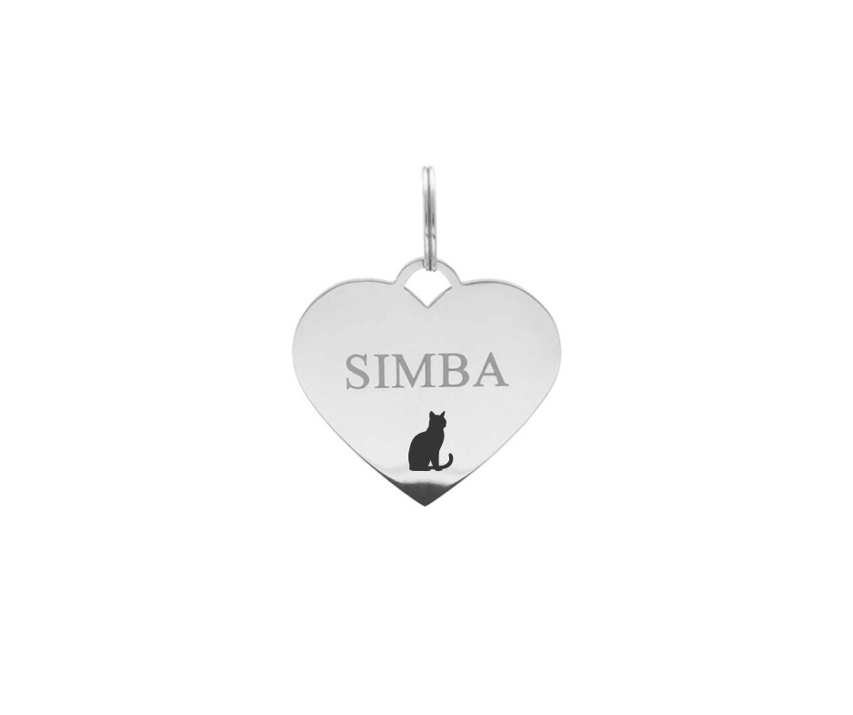Zorg dat uw kat altijd direct te identificeren is met deze hartvormige penning. De penning is bestand tegen roest en verkleuringen en ideaal voor katten vanwege het lichte gewicht en kleine formaat. De penning heeft een afmeting van 22 x 22 mm en is ideaal om te bevestigen aan het kattenbandje. Op de penning is een kleine zittende kat gegraveerd. Wenst u liever een andere gravure? Geef dit dan aan bij het veld 'bijzonderheden'.