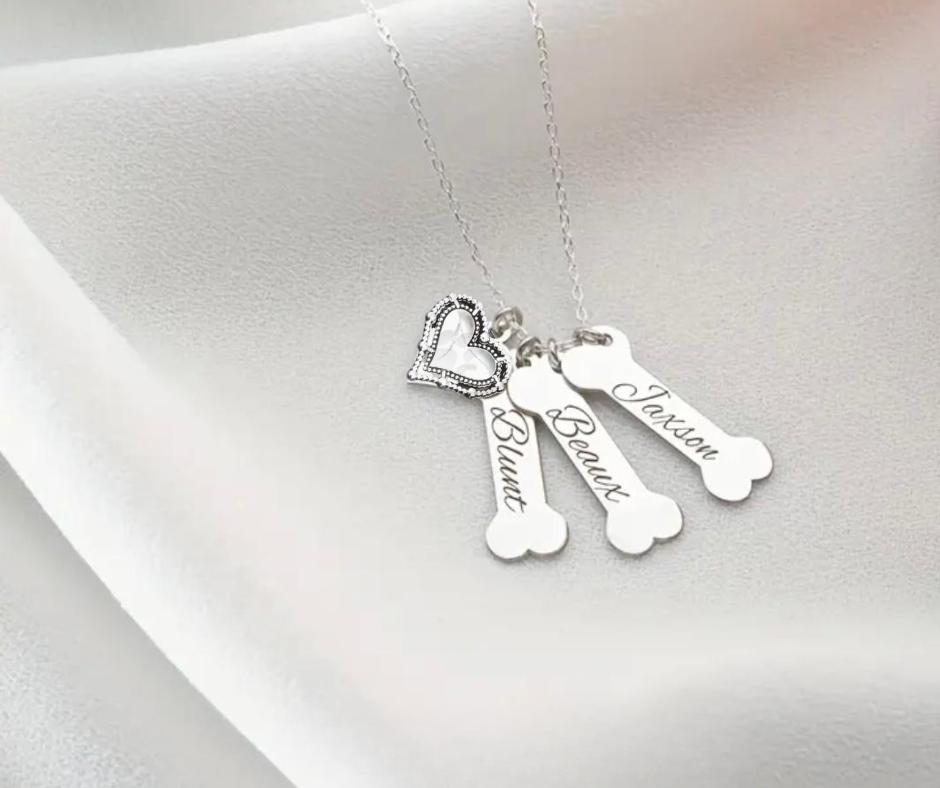 Aan deze liefdevolle ketting kunt u meerdere gegraveerde hondenbotjes met naam toevoegen. De ketting is verkrijgbaar in het zilver en goud en wordt geleverd in een luxe sieradendoosje. U kunt maximaal 3 gegraveerde hondenbotjes toevoegen.
