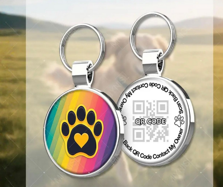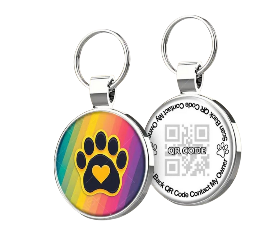 Schitterende unieke Ronde Draaibare Dogtag – Met Hondenpoot & QR Code ✨