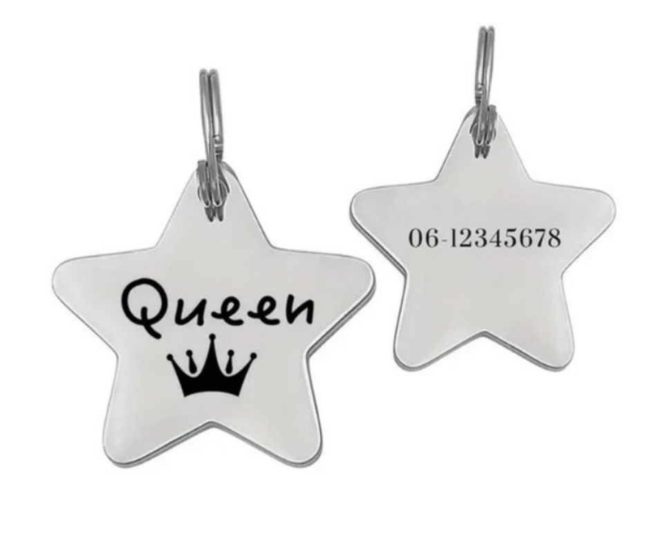 Zorg dat uw huisdier altijd direct te identificeren is met deze Stervormige RVS Hondenpenning. De penning is bestand tegen roest en verkleuringen en daarnaast een schitterende eyecatcher aan de halsband van uw hond.