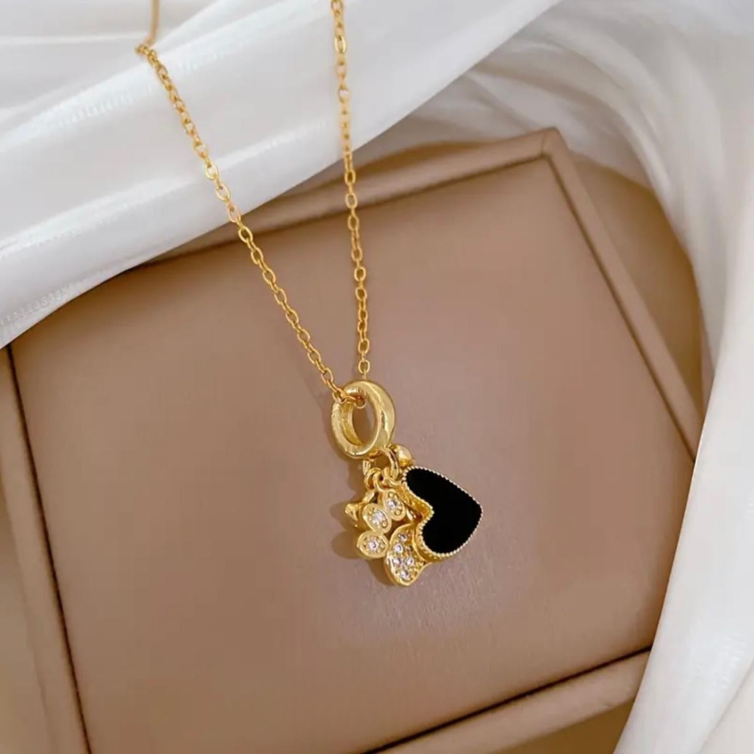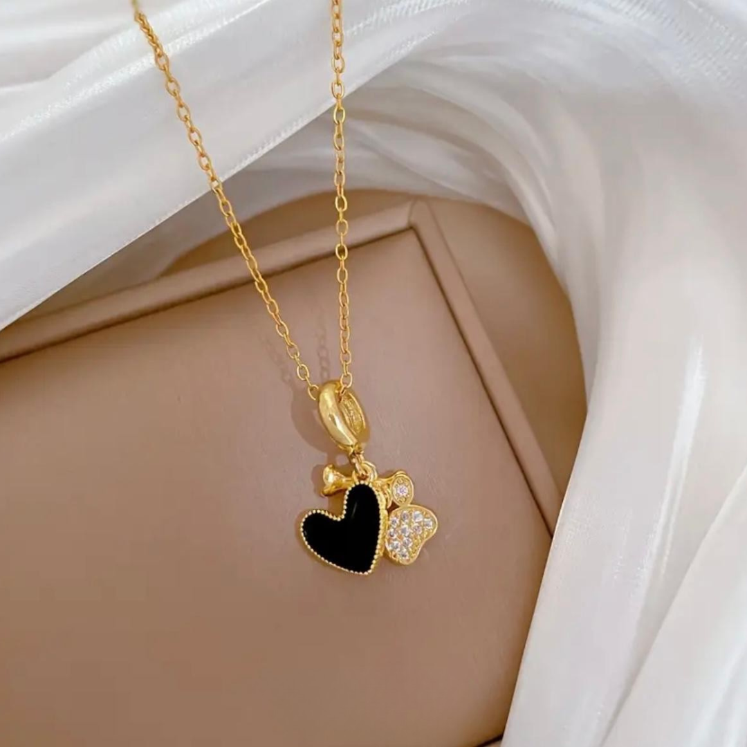 De Midnight Paw Ketting is een subtiel maar luxe sieraad dat jouw liefde voor honden stijlvol uitstraalt. De combinatie van het glanzende gouden pootje met stralende steentjes en het diepe zwarte hartje geeft deze ketting een chique en tijdloze uitstraling.