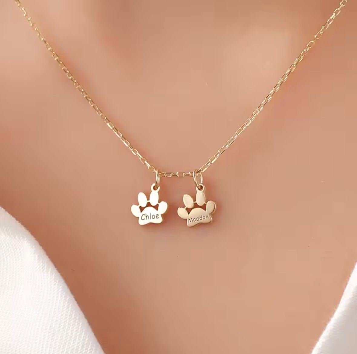 Onze PawName ketting is ook verkrijgbaar met meerdere hondenpoot hangers. Vul de namen in van uw trouwe viervoeters en ontvangt een schitterend en persoonlijk sieraad die jullie voor altijd verbonden houdt.