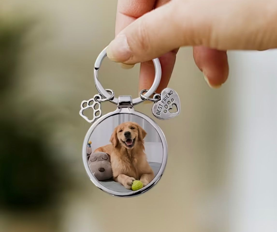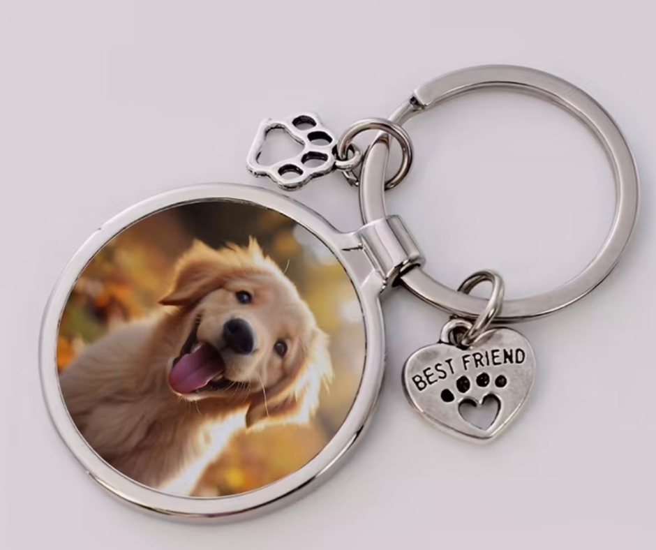 Met deze vrolijke sleutelhanger draag je je vrolijke viervoeter overal met je mee. Met de schattige bedels en een hoogwaardige kleurenfoto wordt het een uniek en persoonlijk accessoire. Perfect om overal met je mee te nemen, aan je sleutelbos of tas of om cadeau te geven.