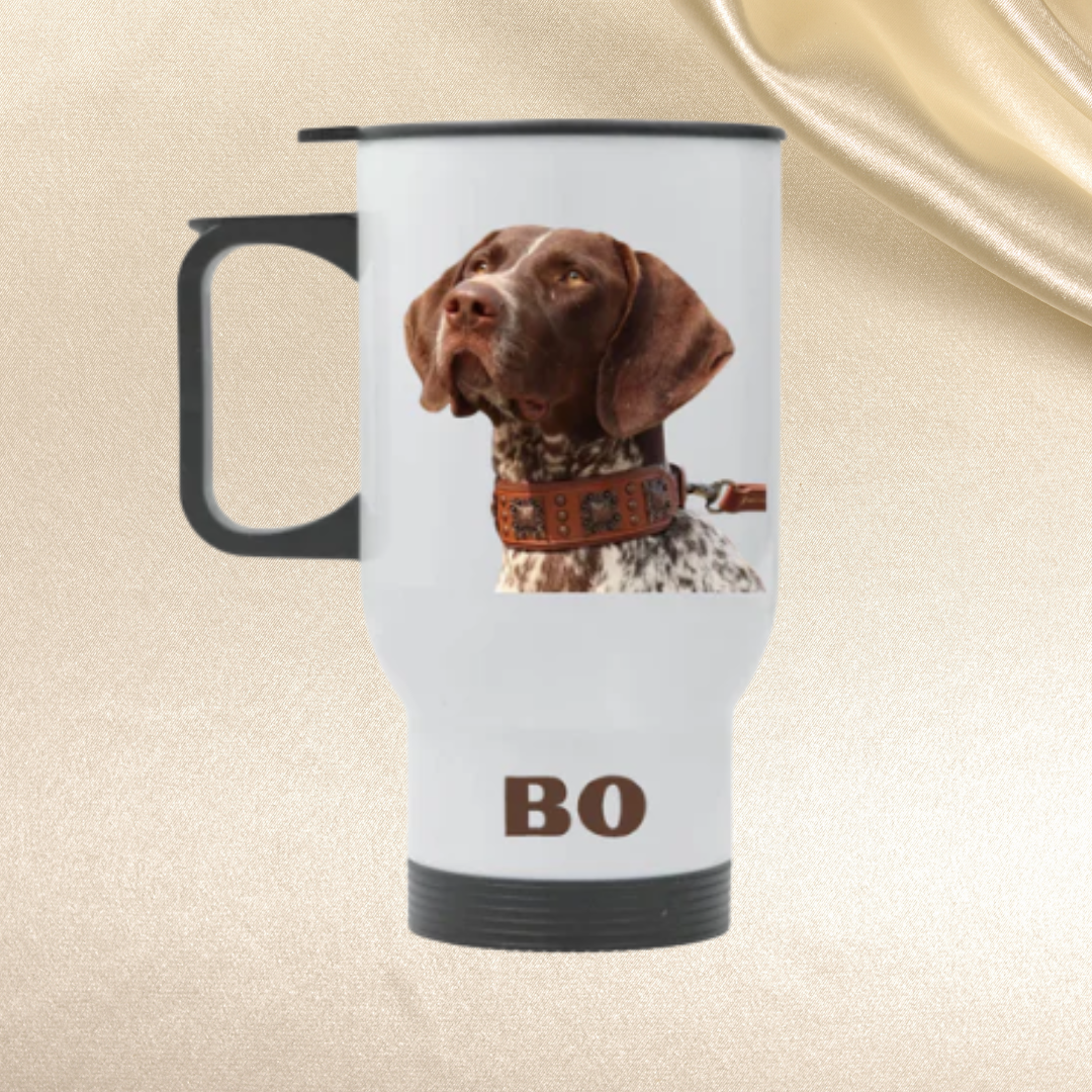 Ben jij vaak onderweg? Dan is deze dubbelwandige thermosbeker perfect voor jou! Neem je trouwe viervoeter overal mee naartoe met deze gepersonaliseerde thermosbeker met handige deksel! Laat je favoriete foto én de naam van je hond afdrukken op deze stijlvolle en duurzame beker en zorg ervoor dat je drankje perfect warm blijft of heerlijk koel voor onderweg. Dankzij de handige deksel zal je drinken niet eruit spatten.