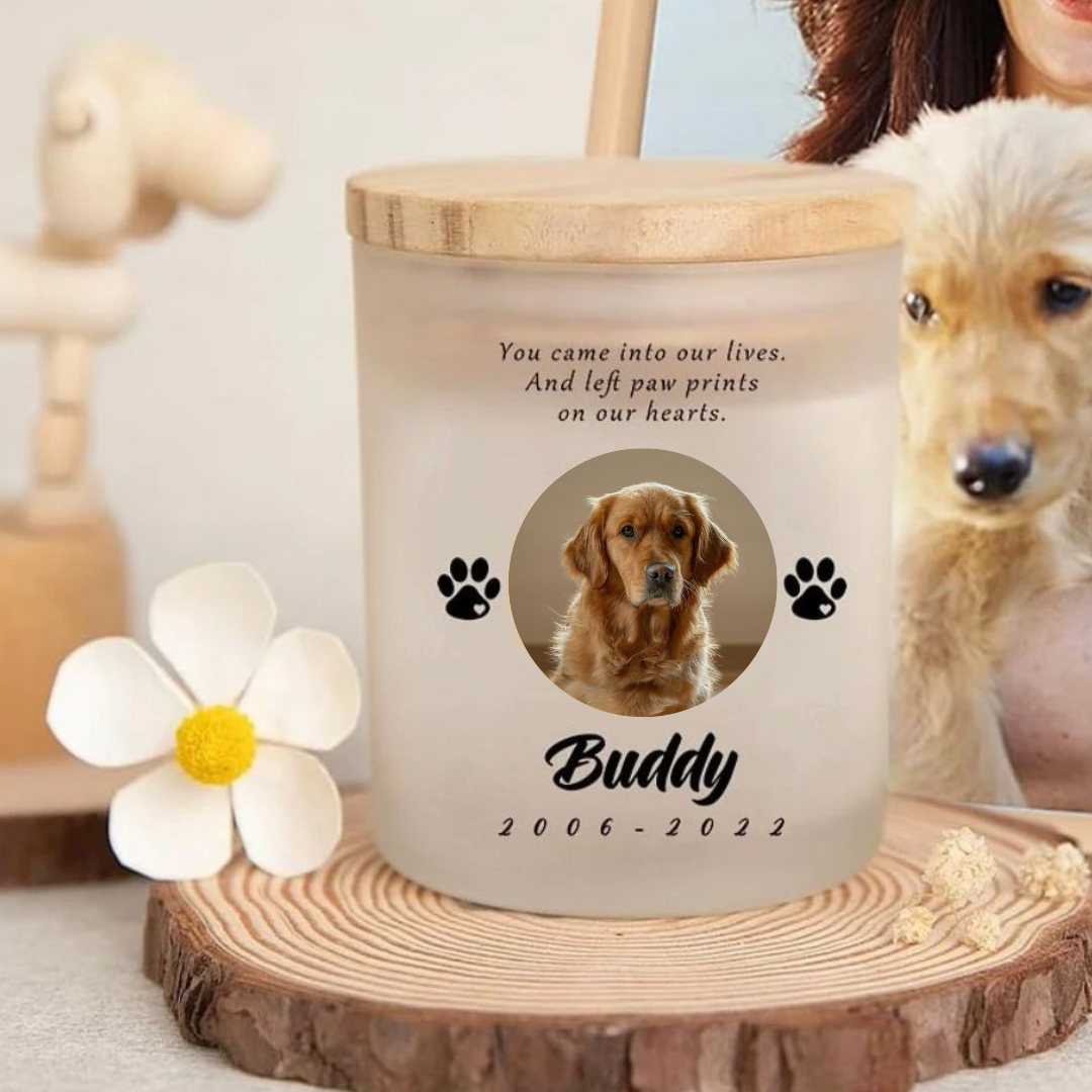 Deze bijzondere waxinelichthouder met foto van uw huisdier straalt niet alleen licht, maar ook de warmte uit van alle momenten die jullie samen deelden.